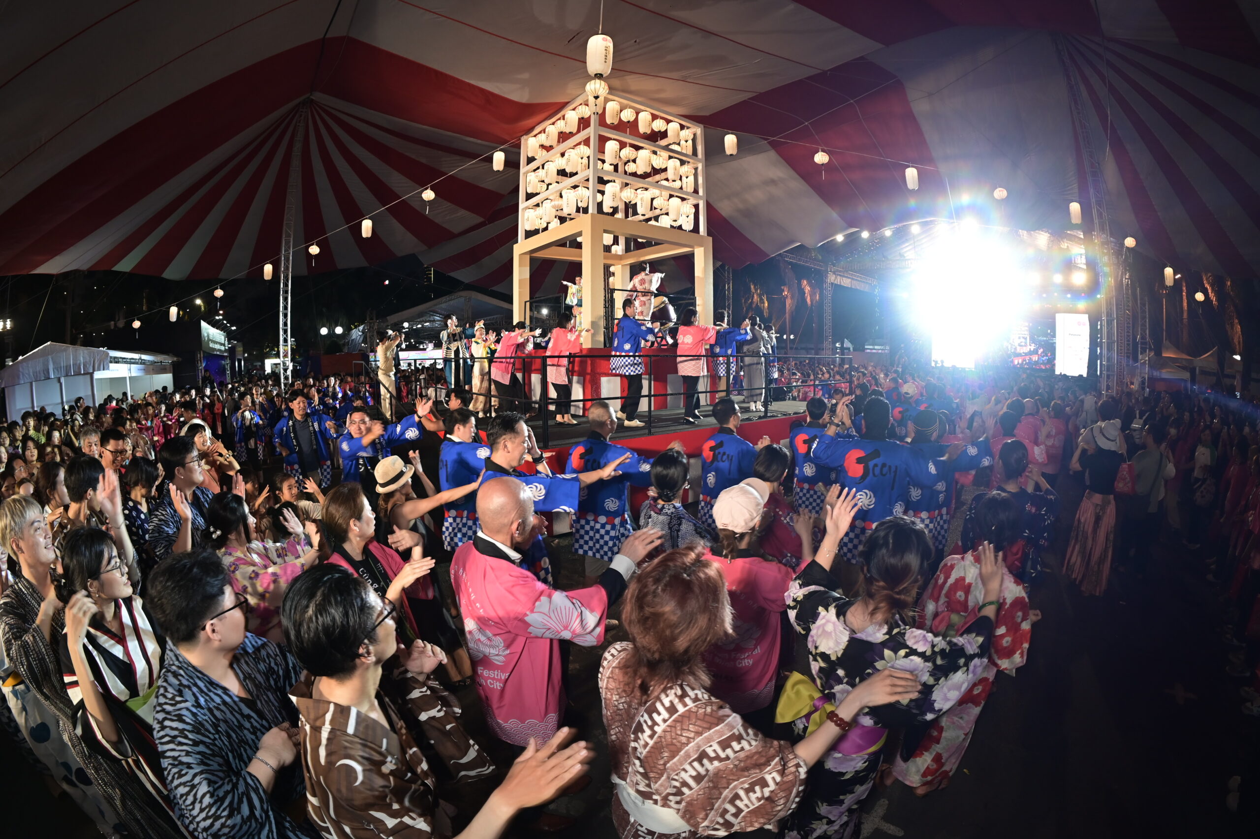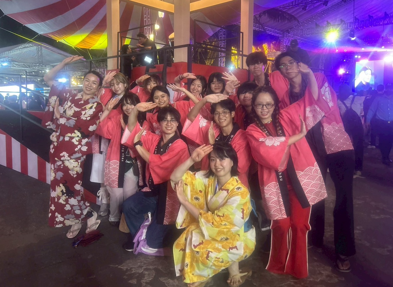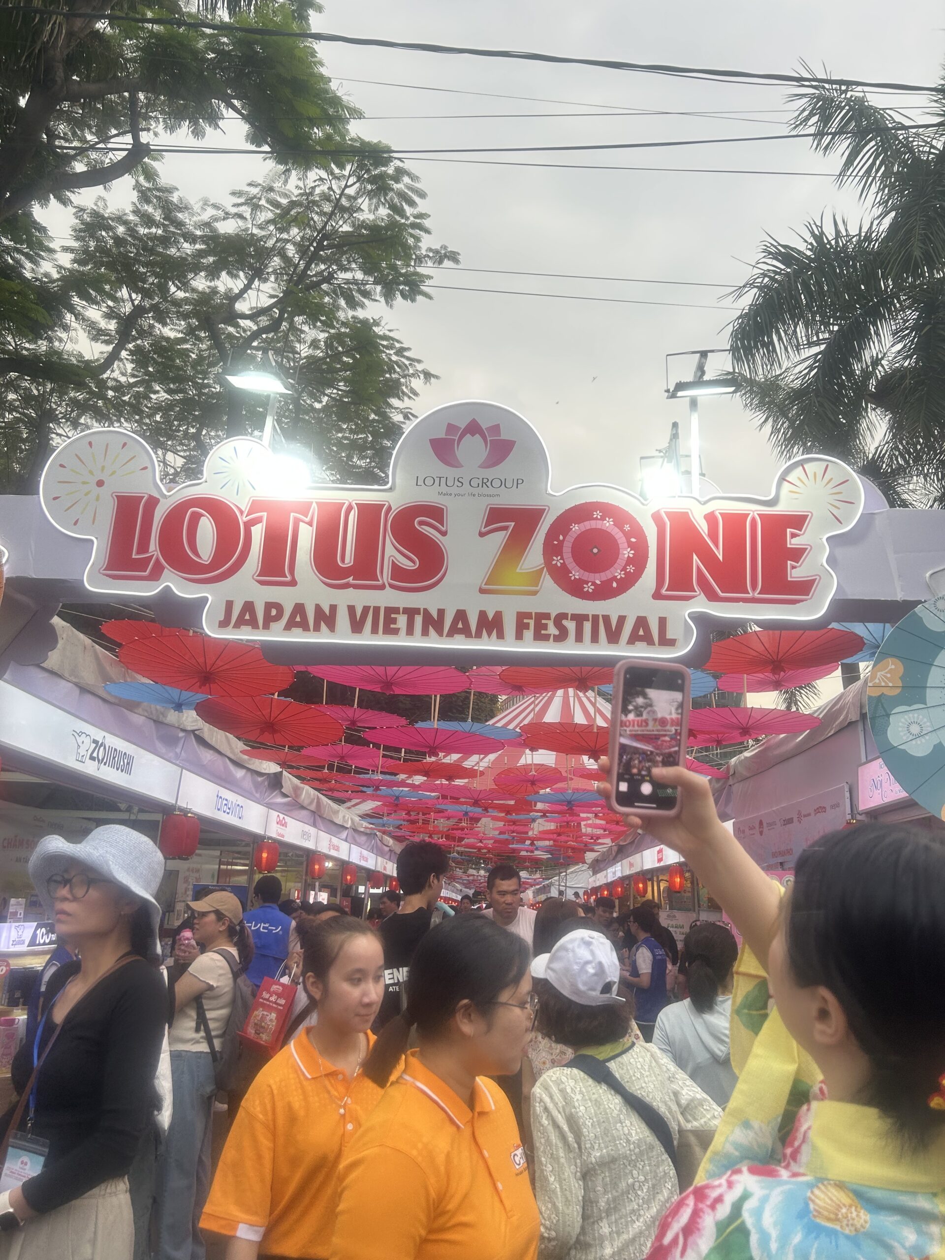 初日の「日越友好盆踊り」では、政府・企業関係者を含む来賓が櫓に上がり、現地来場者が櫓を囲む、参加型プログラムにてレクチャーを担当。11年の歴史の中でも「これほど多くのベトナム人が踊る光景は初めて」と評される盛況となりました。